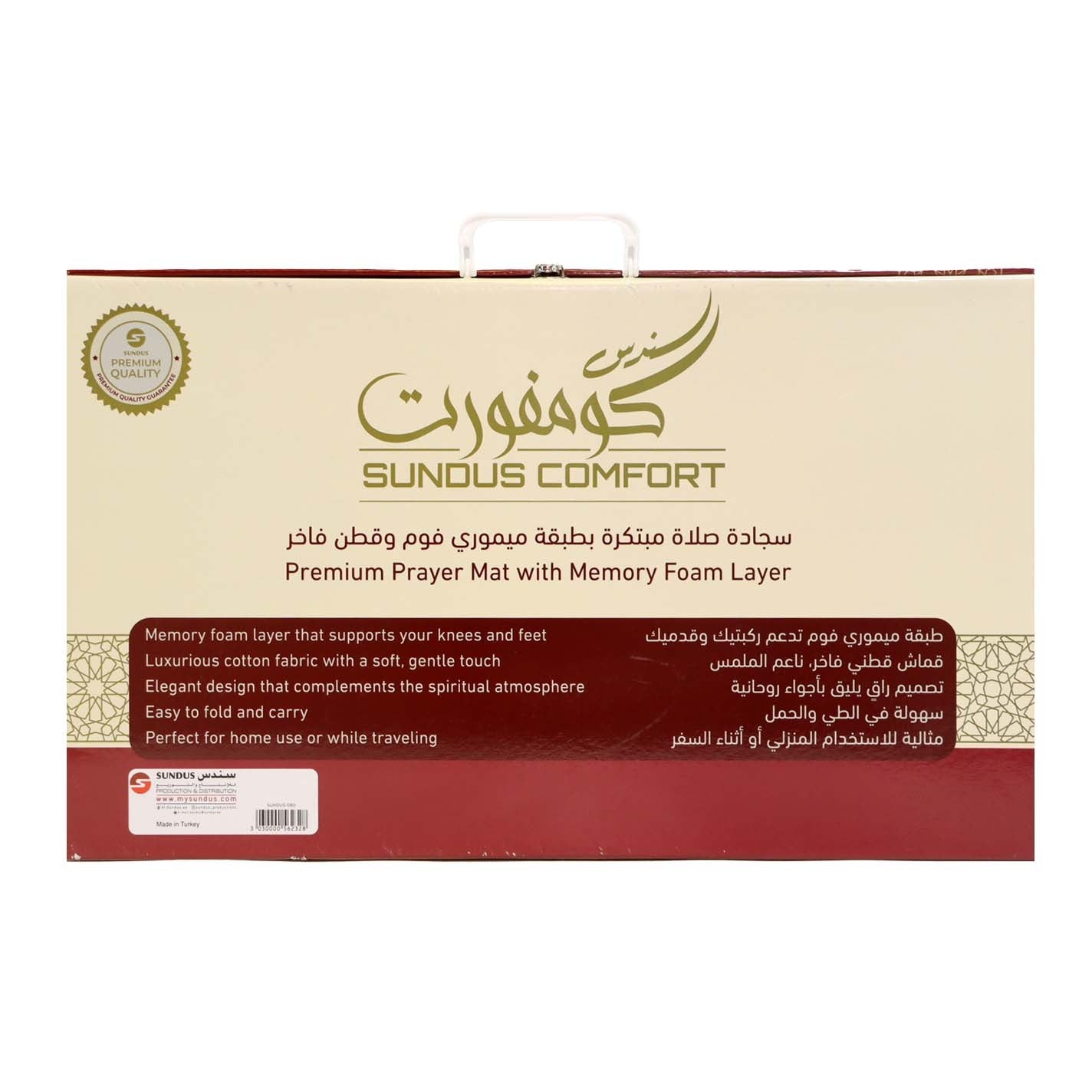 سجادة صلاة عملية ومريحة، مزودة بطبقة إسفنجية خفيفة توفر دعماً لطيفاً أثناء الصلاة دون زيادة في السماكة. تساعد على تقليل الضغط على الركبتين والقدمين، مع سطح ناعم وجودة مناسبة للاستخدام اليومي في المنزل أو المسجد.