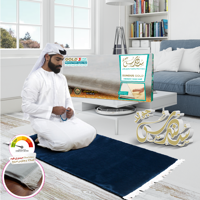 سجادة الصلاة سندس جولد بحشوة ميموري فوم 3 طبقات طبية