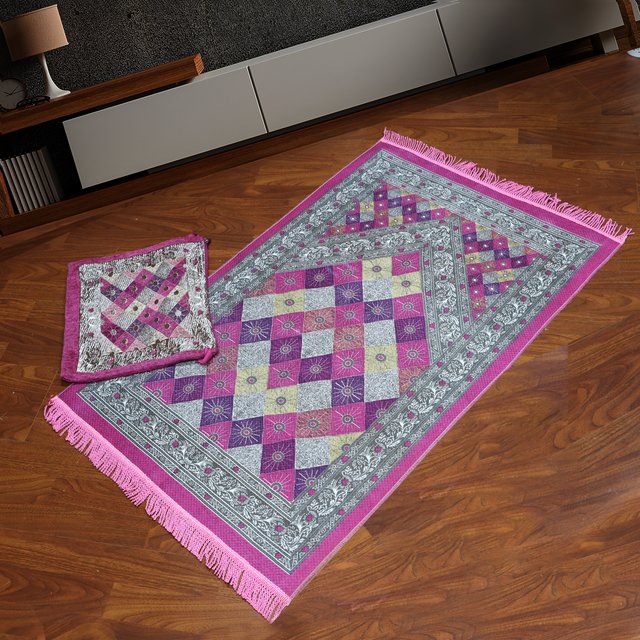 سجادة الصلاة المثالية بتصاميم وألوان مميزة ومتنوعة. مصنوعة من قماش رقيق وخفيف الوزن، يسهل طيها إلى حجم صغير، مما يجعلها مناسبة للصلاة في أي مكان دون عناء.