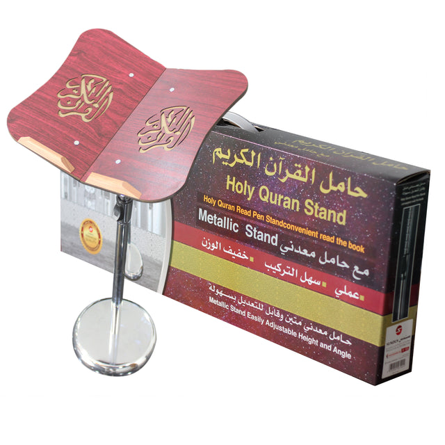 حامل القرآن الكريم يتميز بسهولة التركيب والتحكم في الارتفاع، حيث يتمتع بقاعدة وحامل مصنوعين من الكروم مما يمنحه مظهرًا أنيقًا. مكان وضع القرآن الكريم مصنوع من خشب عالي الجودة لضمان المتانة والجودة.