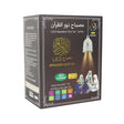 This LED lamp works as an electric Quran speaker containing the entire Quran recited by a selection of about 10 famous Qaris, including Sheikh Maher Al-Muaiqly, Sheikh Mishary Alafasy, Sheikh Abdul Basit Abdul Samad, and others.