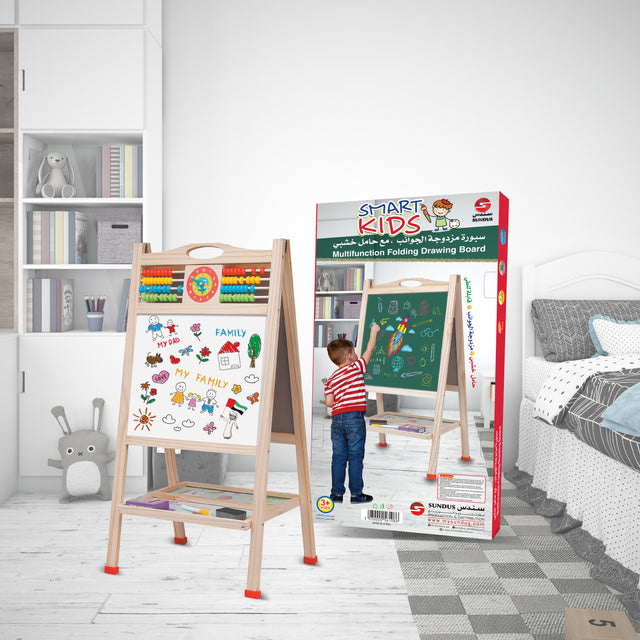 تم تصميم سبورة العبقري الصغير من سندس لتكون على الوجهين سبورة طباشير ولوحة بيضاء. سيوفر هذا التصميم المطور العديد من الخيارات للإبداع،